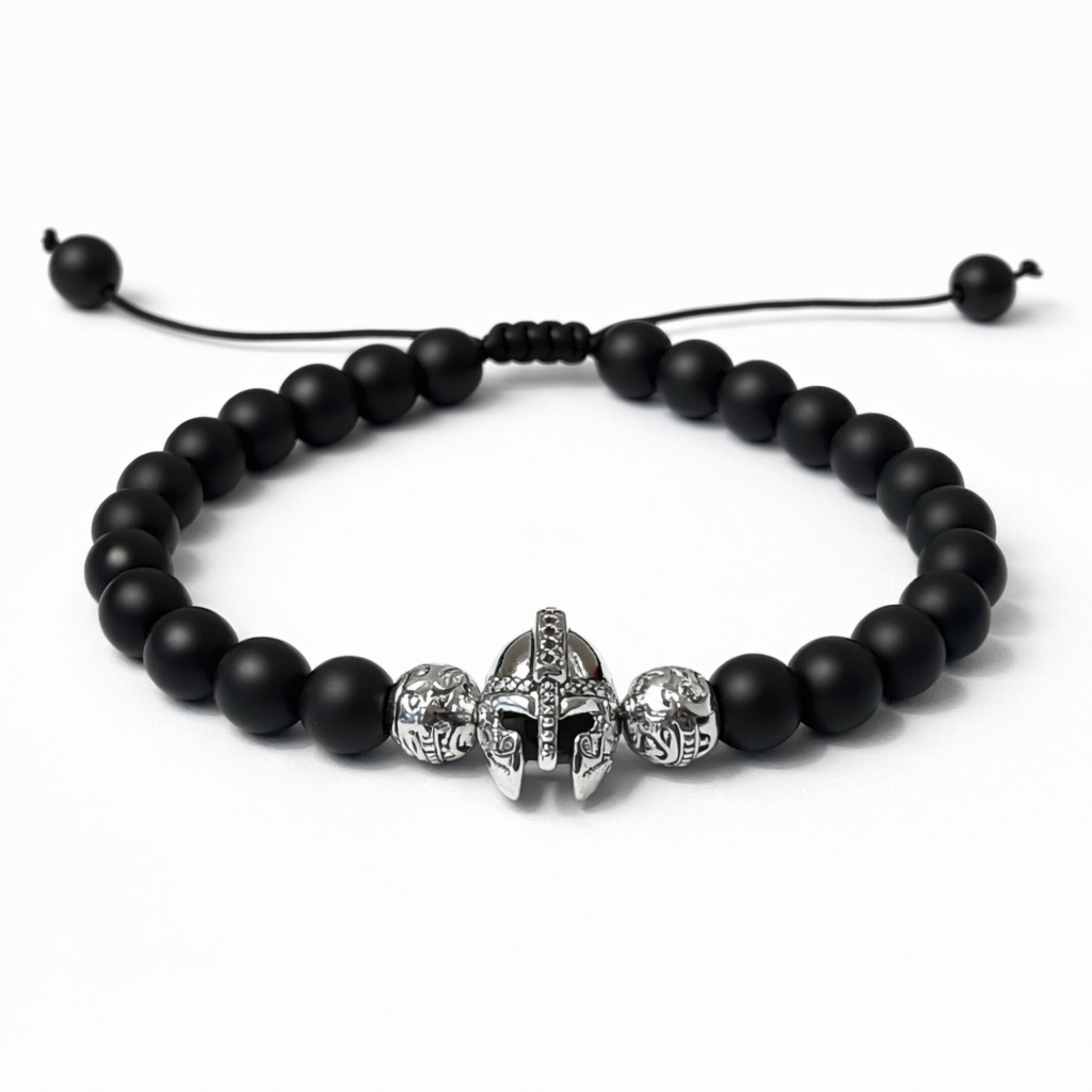Pulsera ajustable hecha a mano cuentas mate y dijes pewter.