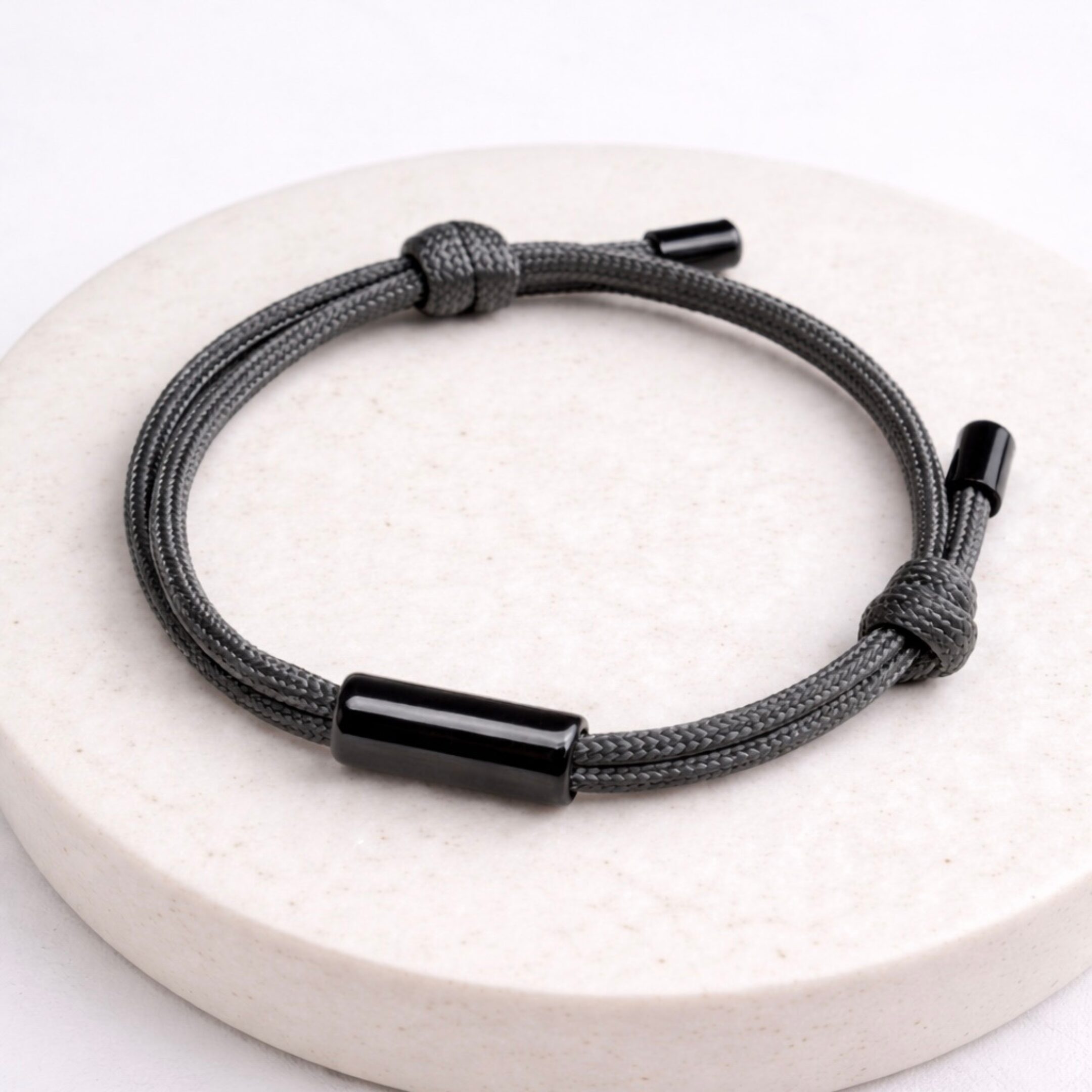 Pulsera hombre hecha a mano ajustable , lazo gris . Dije negro.